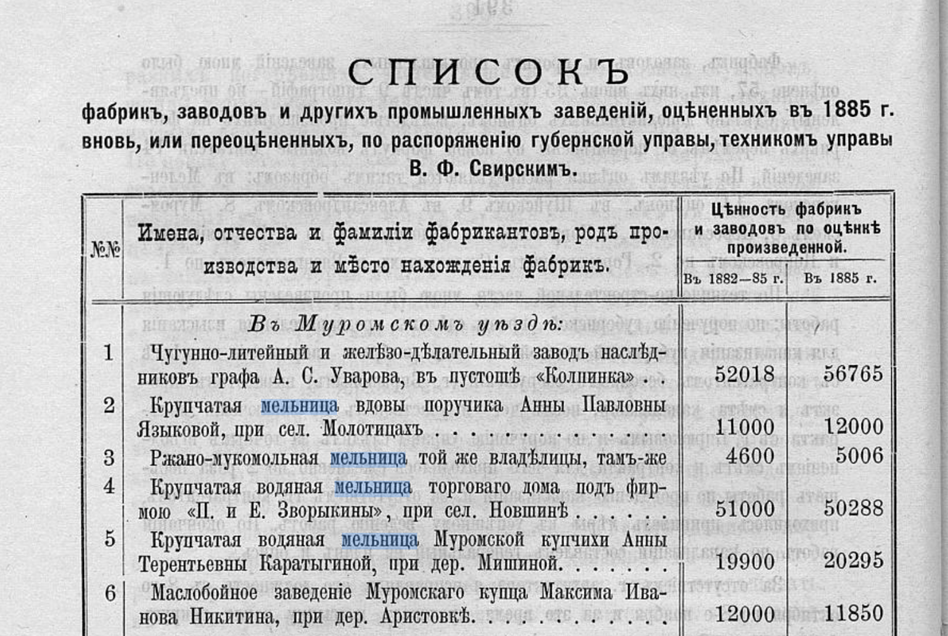 Поиск информации о мельнице на примере Владимирской губернии
