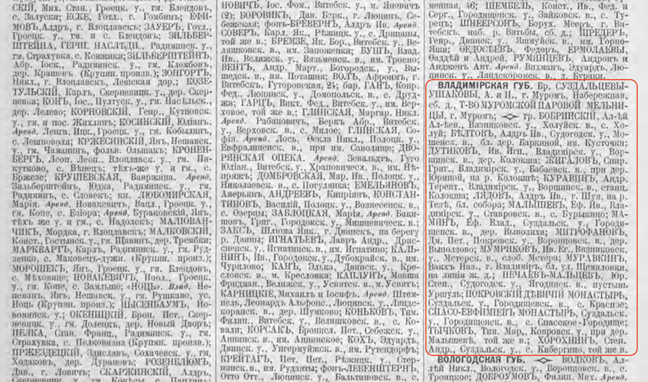 - Список населенных мест Владимирской губернии 1905 года и другие справочники