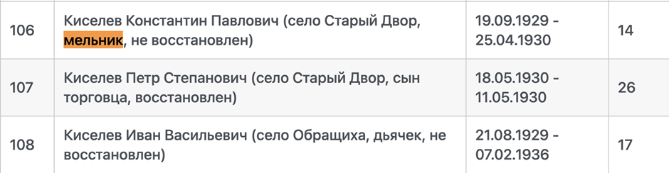 - Основные, где может быть указан род деятельности (в нашем случае мельник): перепись 1897 года, справки ЗАГС с иными сведениями, сами актовые книги ЗАГС (ГАВО, фонды Р-1190, Р-1290, Р-2711) , автобиографии в местах учебы, работы или партийной организации.
